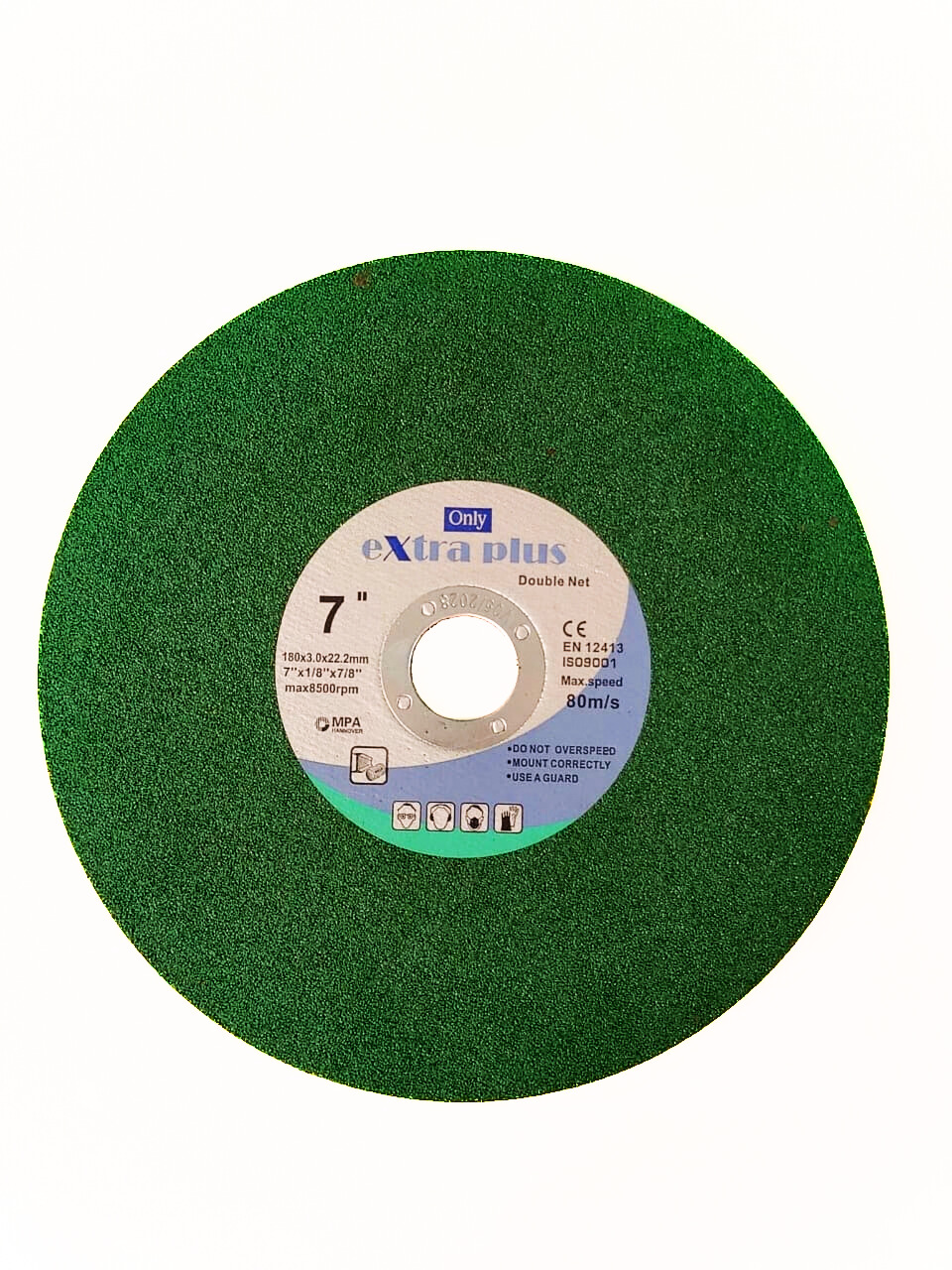 Durable 7-inch 3mm cut-off wheel suitable for heavier cutting duties. Ensures stability and long service life while cutting solid metal bars, rods, and thick steel plates.
