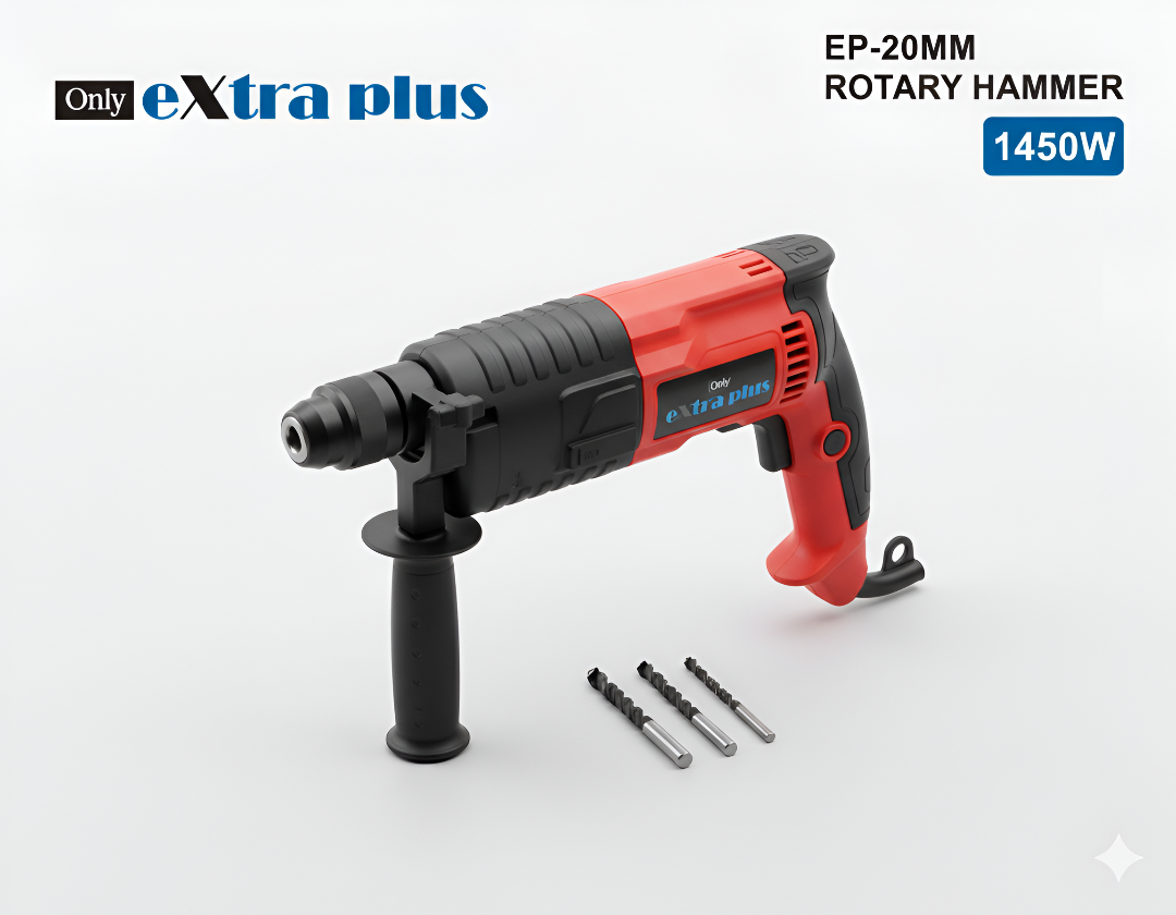 Durable 20mm rotary hammer suitable for drilling and chiseling in concrete, brick, and stone. Offers high impact power, long life, and stable performance for construction professionals.